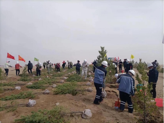北疆新聞網(wǎng)、北疆新聞APP、北疆云消息(張博)黃河中上游沿岸,谷雨時(shí)節(jié),在庫(kù)布其沙漠和騰格里沙漠腹地,植樹(shù)擴(kuò)綠正隨著光伏治沙降碳而延伸,描繪著藍(lán)綠交織、水沙和諧、鄉(xiāng)村振興的工筆畫(huà)。4月22日是第53個(gè)世界地球日,也是第18屆庫(kù)布其植樹(shù)節(jié),蒙西基地庫(kù)布其200萬(wàn)千瓦光伏治沙項(xiàng)目現(xiàn)場(chǎng)、甘肅武威50萬(wàn)千瓦光伏治沙項(xiàng)目現(xiàn)場(chǎng)同步舉行大型植樹(shù)紀(jì)念活動(dòng),主題為“光伏治沙護(hù)河,庫(kù)布其降碳擴(kuò)綠與鄉(xiāng)村振興”,正式啟動(dòng)庫(kù)布其“十四五”1億棵碳匯林工程第二期種植。億利集團(tuán)董事長(zhǎng)王文彪表示:“‘十四五’期間,我們將在黃河流域的庫(kù)布其沙漠、烏蘭布和沙漠、騰格里沙漠的億利治沙區(qū)域建設(shè)上百公里治沙護(hù)河碳匯林帶,2021年已如期完成2000萬(wàn)棵種植任務(wù),2022年將繼續(xù)通過(guò)‘政策+產(chǎn)業(yè)+公益’的模式,實(shí)施光伏板下種植和沙漠生態(tài)種植,確保完成2000萬(wàn)棵種植任務(wù)。億利庫(kù)布其治沙科技和經(jīng)驗(yàn)?zāi)J揭沧呱狭宋鞑啬乔吆吆0蔚貐^(qū),成功種活了近40萬(wàn)株鄉(xiāng)土樹(shù)種,我們將加快推動(dòng)那曲城鎮(zhèn)植樹(shù)關(guān)鍵技術(shù)研發(fā)與綠化模式示范項(xiàng)目成果的規(guī)?;茝V?!被顒?dòng)現(xiàn)場(chǎng)全面啟動(dòng)了國(guó)家在庫(kù)布其沙漠規(guī)劃的退化林修復(fù)工程、蒙西基地2GW光伏治沙和甘肅武威500兆瓦光伏治沙項(xiàng)目板下生態(tài)種植工程、杭錦旗林草局和團(tuán)委保護(hù)母親河工程、螞蟻森林、大鉦資本庫(kù)布其沙漠雙碳公益林、鄂爾多斯中小企業(yè)庫(kù)布其公益林、杭錦旗工商聯(lián)林、杭錦旗稅務(wù)碳匯林等多個(gè)生態(tài)植樹(shù)項(xiàng)目。