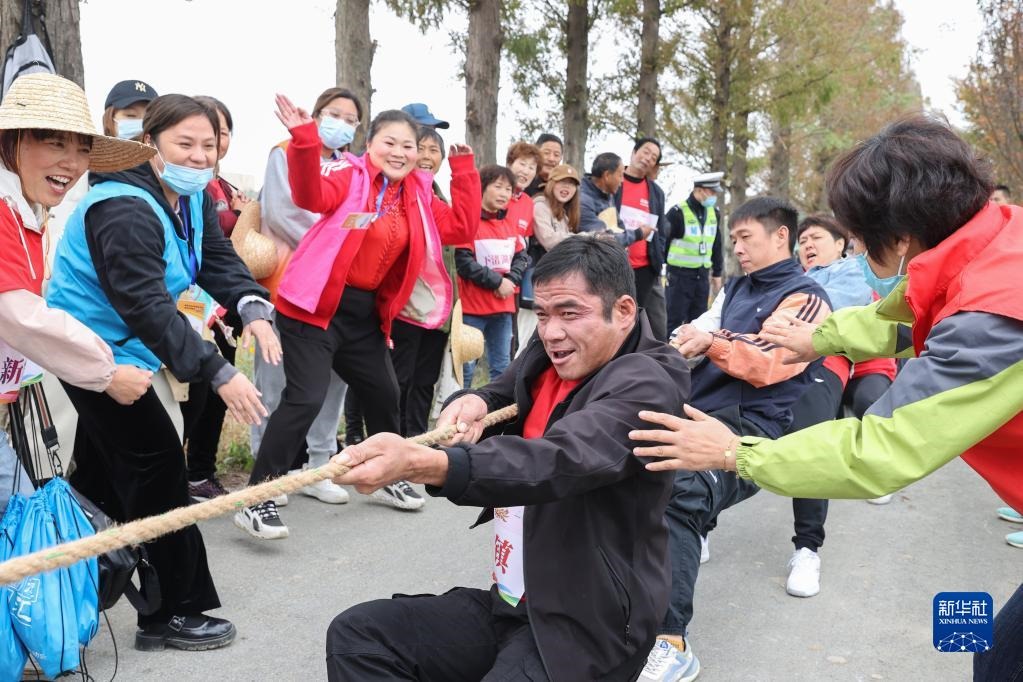 11月15日,在德清縣舉辦的美好家園運(yùn)動(dòng)會(huì)暨新安鎮(zhèn)稻田爭霸賽上,村民參加拔河比賽。新華社發(fā)(姚海翔 攝)
