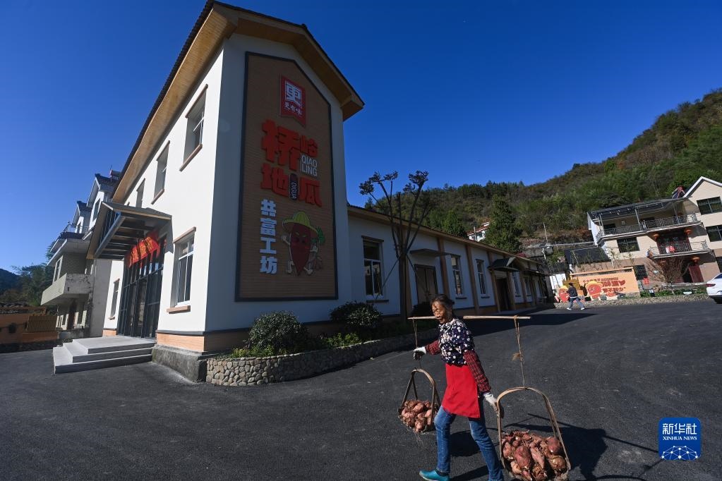 11月23日,村民把剛收獲的地瓜送到浙江省建德市更樓街道橋嶺村共富工坊里進(jìn)行統(tǒng)一加工。新華社記者 徐昱 攝