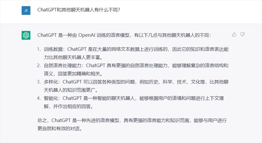 問:“ChatGPT和其他聊天機(jī)器人有什么不同?”