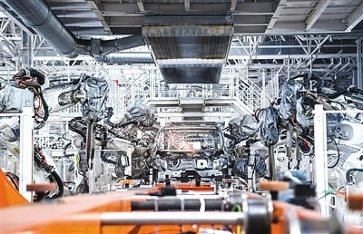 焊裝機器人在吉林長春中國第一汽車集團有限公司焊裝車間內(nèi)焊接車身