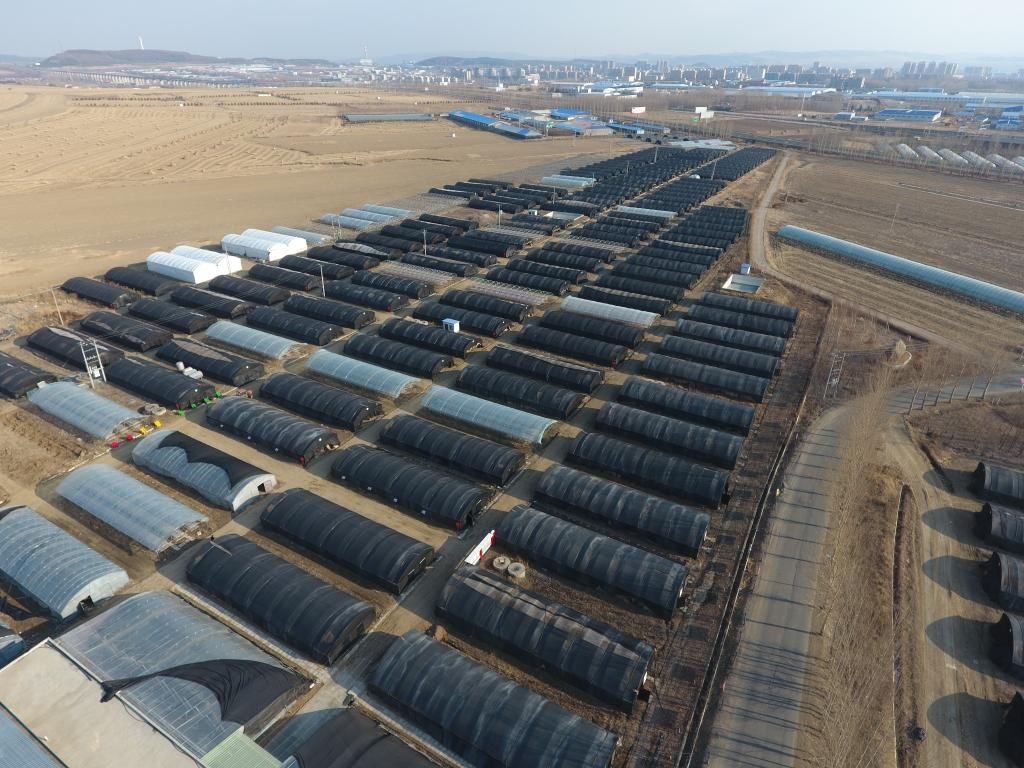 悅來(lái)頤和食用菌種植專業(yè)合作社的部分大棚(無(wú)人機(jī)照片)。新華社記者 王松 攝