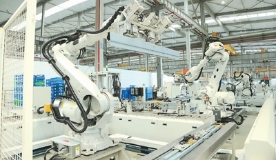 浙江省杭州市臨平區(qū)經(jīng)開區(qū)一座“黑燈工廠”,智能機械臂正忙著工作。竇瀚洋 王 玨 攝影報道