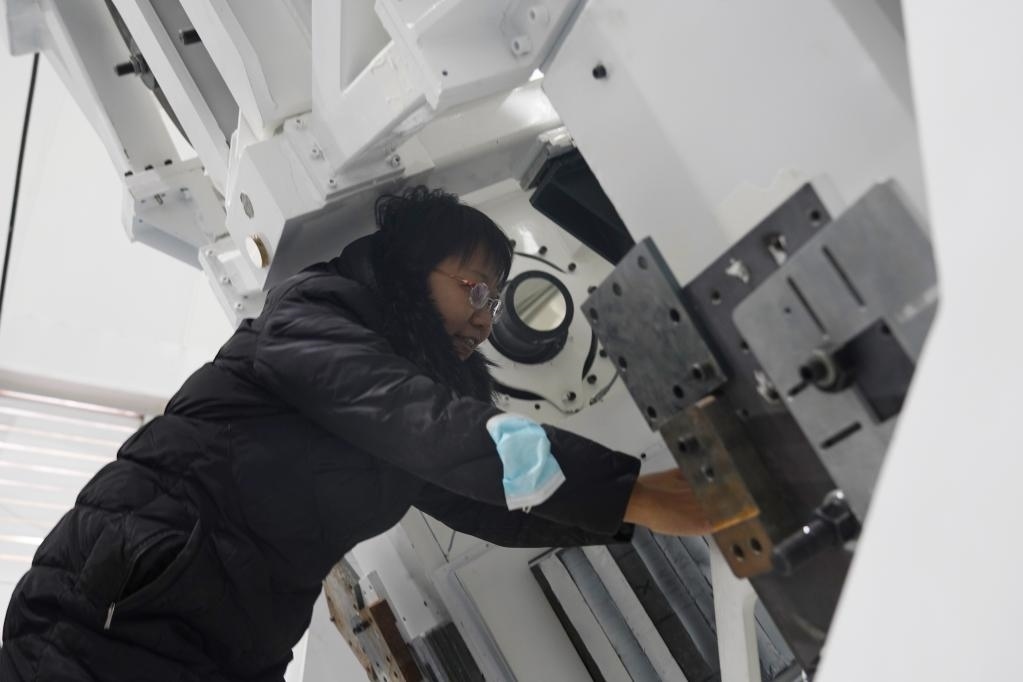 4月8日,中國科學(xué)院國家天文臺(tái)懷柔太陽觀測(cè)基地總工程師王東光在AIMS圓頂內(nèi)工作。(新華社記者陳杰 攝)