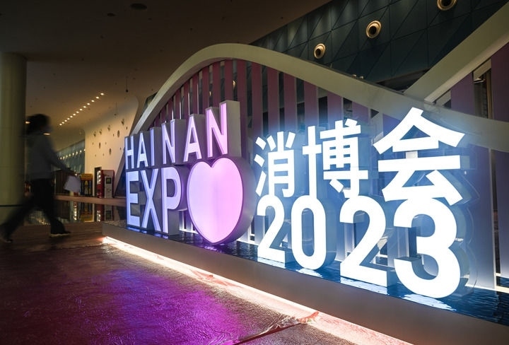 4月8日拍攝的第三屆中國國際消費品博覽會展館內部場景。新華社記者 蒲曉旭 攝