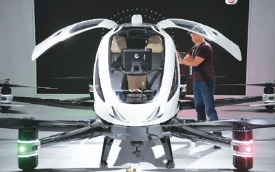 圖為廣交會(huì)新設(shè)置的新能源及智能網(wǎng)聯(lián)汽車(chē)展區(qū)內(nèi),采購(gòu)商在了解正在展示的飛行器產(chǎn)品。新華社記者 鄧 華攝