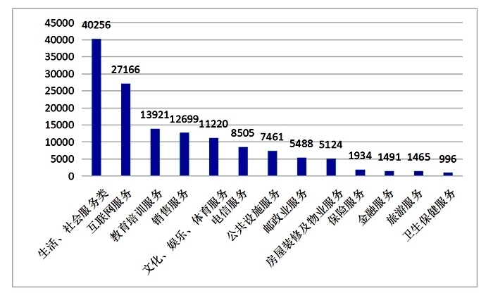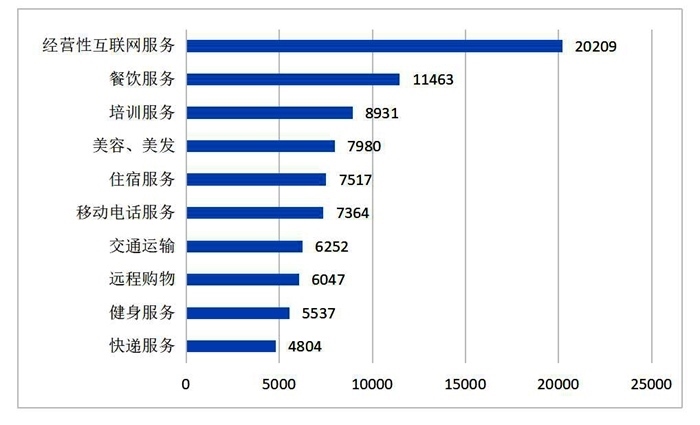 服務(wù)細分領(lǐng)域投訴前十位(單位:件)來源:中消協(xié)