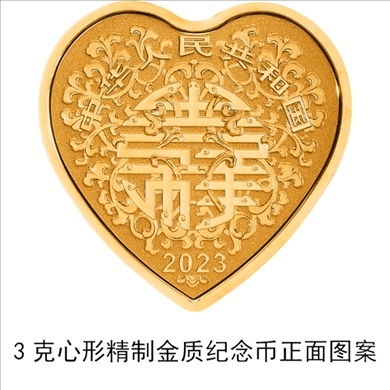 3克心形金質(zhì)紀念幣為精制幣,含純金3克,外接正方形邊長18毫米,面額50元,成色99.9%,最大發(fā)行量20000枚。
