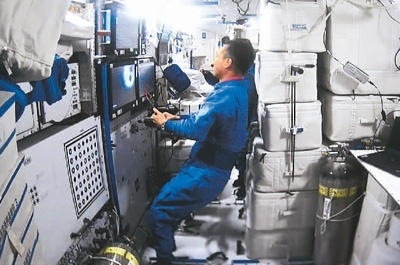 5月11日,天舟六號貨運(yùn)飛船與空間站組合體完成交會對接后,天和核心艙內(nèi)的畫面。 新華社記者 郭中正攝