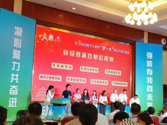 會(huì)上宣布了第八屆“核+X”大賽對話活動(dòng)承辦高校為吉林大學(xué),并將高校學(xué)生課外“核+X”創(chuàng)意大賽的旗幟從上屆承辦高校西安交通大學(xué)的手中,傳遞給了吉林大學(xué)。