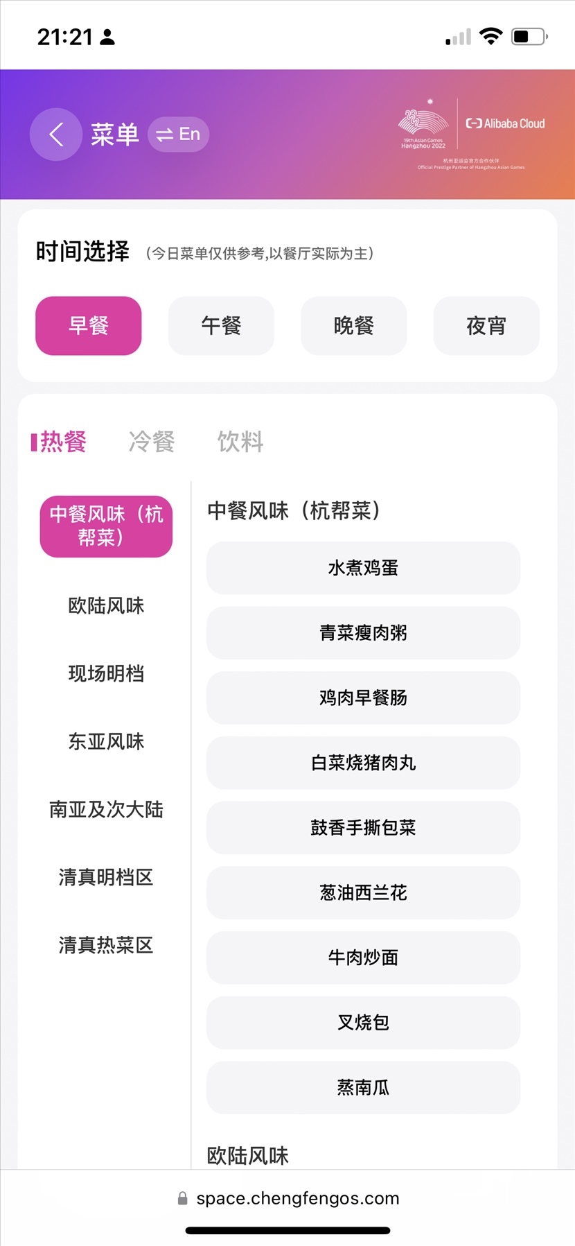 老鴨蘿卜湯、宋嫂魚羹、雪菜蒸鱸魚、東坡肉、京蔥爆牛肉……打開(kāi)云上亞運(yùn)村的 “云上通”小程序,各色餐食便可隨意選擇預(yù)約。不僅傳統(tǒng)中餐,“歐陸風(fēng)味”“東亞風(fēng)味”“東南亞及次大陸”各式特色餐食,也可根據(jù)個(gè)人喜好和時(shí)間安排進(jìn)行性選擇。同時(shí),還可以隨時(shí)查看餐廳的實(shí)時(shí)人流量。