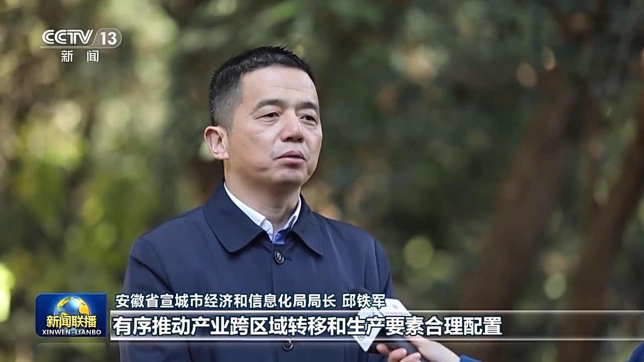 安徽省宣城市經(jīng)濟和信息化局局長 邱鐵軍:習(xí)總書記強調(diào),有序推動產(chǎn)業(yè)跨區(qū)域轉(zhuǎn)移和生產(chǎn)要素合理配置。我們發(fā)揮區(qū)位優(yōu)勢,主動靠上去、精準(zhǔn)接上去、全力融進去,深度參與長三角產(chǎn)業(yè)鏈供應(yīng)鏈分工合作。