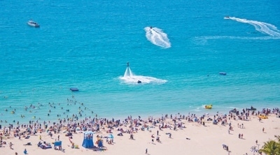 海南三亞,大東海海濱景區(qū)游人如織。葉龍斌攝(影像中國(guó))