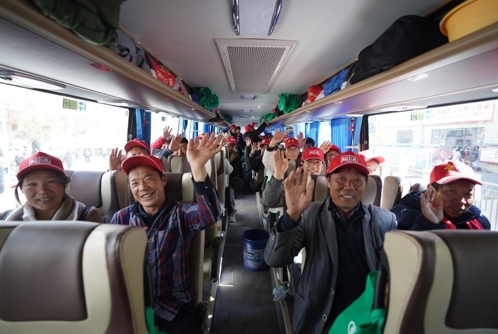 “這是我首次乘坐免費的務(wù)工專車,途中還提供用餐,政府把我們直接送到‘廠門口’就業(yè),我覺得很貼心?!眲?wù)工人員冉茂軍說。