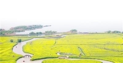 江蘇省揚州市高郵市湖上花海景區(qū),油菜花競相綻放。周社根攝(人民視覺)