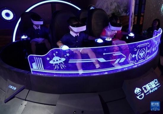 4月27日,小朋友在北京科幻嘉年華現(xiàn)場(chǎng)體驗(yàn)VR游戲。