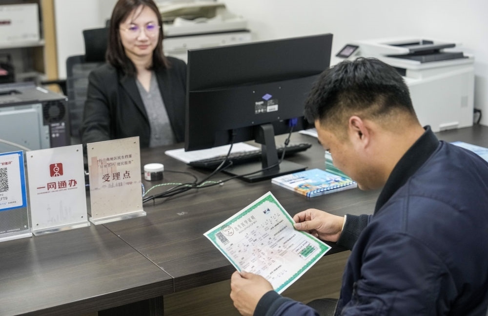 2024年3月8日,市民在位于上海市檔案館的長(zhǎng)三角地區(qū)民生檔案異地查檔受理點(diǎn)查詢出生醫(yī)學(xué)證明檔案。新華社發(fā)(陳夢(mèng)澤 攝)