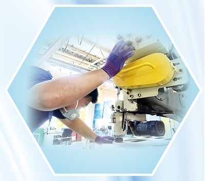 萬基萬公司砂輪生產(chǎn)部工作人員正在檢測(cè)砂輪硬度。金成勛攝
