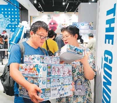 5月17日,北京高達(dá)基地旗艦店在王府井銀泰in88開(kāi)業(yè),現(xiàn)場(chǎng)成品高達(dá)模型吸引不少市民參觀。圖為消費(fèi)者正在選購(gòu)。宋家儒攝(人民圖片)