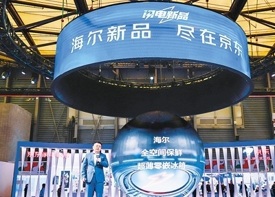 2024年中國(guó)家電及消費(fèi)電子博覽會(huì)現(xiàn)場(chǎng),京東攜手海爾等品牌首發(fā)數(shù)十款家電新品。受訪者供圖