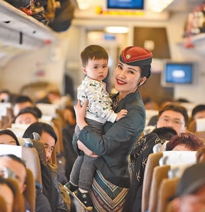 在蘭新高鐵D8803次列車(chē)上,乘務(wù)員與旅客互動(dòng)。擺風(fēng)亮攝(影像中國(guó))