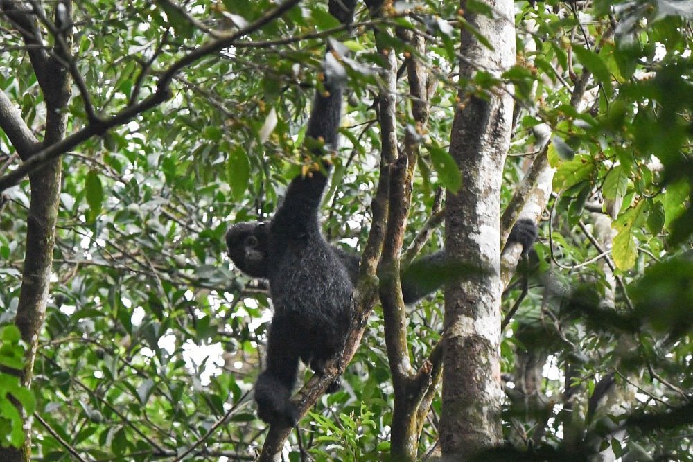 2020年11月12日在海南霸王嶺熱帶雨林中拍攝的海南長(zhǎng)臂猿。新華社記者 蒲曉旭 攝