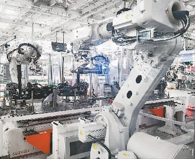 在繁榮廠區(qū),這樣的工業(yè)智能機(jī)器人還有很多,通過機(jī)器人間的協(xié)作,實(shí)現(xiàn)整車前后風(fēng)擋玻璃、輪胎、座椅等全自動裝配,機(jī)艙管路、胎壓等實(shí)現(xiàn)在線全自動檢測。焊裝車間自動化率達(dá)到100%,涂膠自動化率達(dá)到97%,總裝自動化率達(dá)到30%。