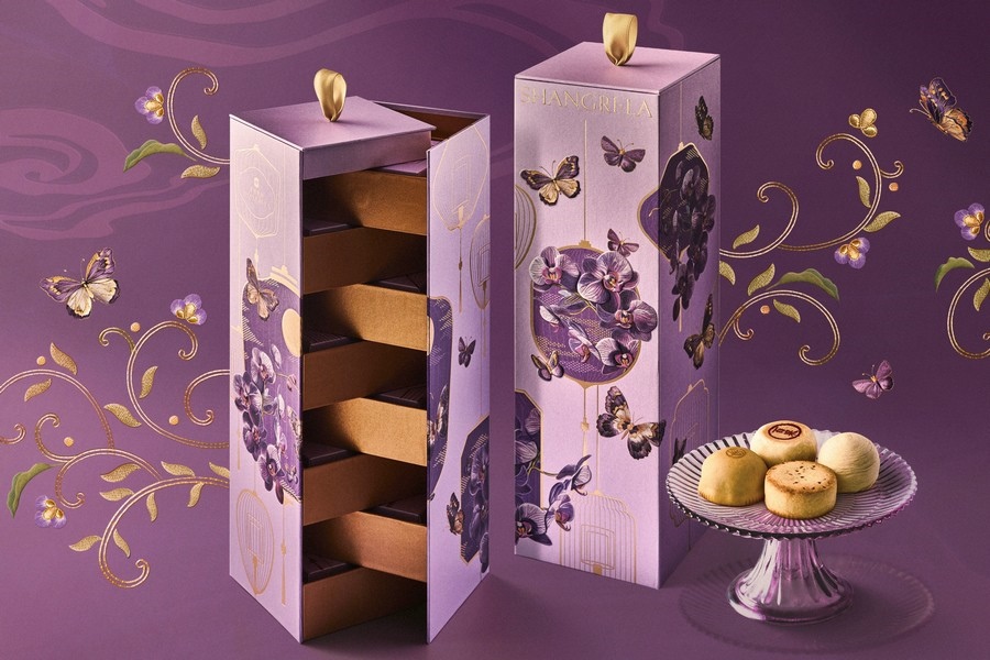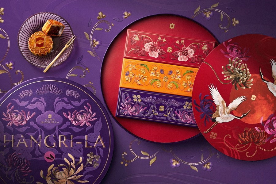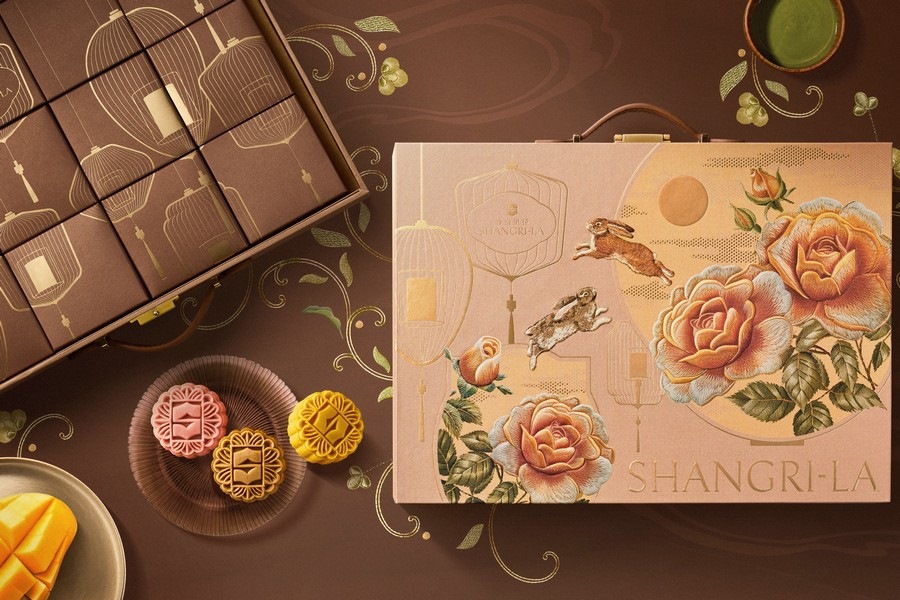 童心未泯家庭款月餅,創(chuàng)意可愛的小火車造型,一盒囊括哈密瓜鳳梨雙果、紅豆山楂、巧克力牛奶芯三種新穎口味,滿載溫馨與甜蜜緩緩駛來;賞心月目雪媚娘流心月餅,打破傳統(tǒng)的禮盒,采用了別致巧思的浪漫禮包,包內(nèi)裝有雪媚娘巧克力流心核桃栗子、烏龍白桃水蜜桃流心、陳皮土鳳梨金桔流心和抹茶紅豆草莓流心月餅,細膩爽口,唇齒滿足, 給味蕾帶來別樣享受;八方鴻運月餅,八珍玉食,八面玲瓏,禮盒中包含廣式單黃白蓮蓉、蘇式百果椒鹽、瓊式純鳳梨酥、京式自來紅、潮式松露鮑魚、晉式蛋月燒棗泥松仁、滇式玫瑰云腿、川香牛肉藤椒軟心,可甜可咸,款款新意,薈萃八方鴻運,饋贈四方親朋;香格里拉手提箱月餅,設(shè)計精巧的手提箱,薈萃亞洲滋味,馬來西亞白咖啡、椰汁西米、宇治抹茶、榴蓮、芒果柚子、香蘭葉月餅,一盒六味,配上軟糯綿化的桃山皮,一口甘香,馥郁悠長。一系列月餅禮盒,結(jié)合濃郁當?shù)靥厣摹把蛉舛Y盒”、“燒麥禮盒”、“烤羊腿禮盒”,還有香格里拉定制青島啤酒、醬香白酒、甄選紅酒等為節(jié)日助興。