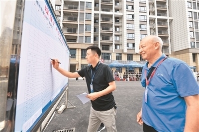近年來,湖北省襄陽市保康縣持續(xù)改善城市人居環(huán)境、提升城市功能與品位,讓群眾住有所居、安居宜居的夢想不斷成為美好現(xiàn)實。圖為??悼h新型城鎮(zhèn)化項目國投·梅嶺新居小區(qū)開展分房選房工作時,工作人員在填寫房源分配信息。楊 韜攝(人民視覺)