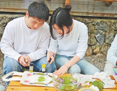 圖為顧客在肖婷婷的民宿體驗(yàn)“拓印春天”手工活動(dòng)。