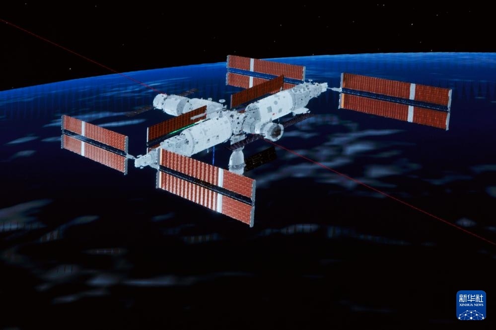 4月24日在北京航天飛行控制中心拍攝的神舟二十號(hào)載人飛船成功對(duì)接空間站天和核心艙的模擬畫(huà)面。新華社記者 金立旺 攝