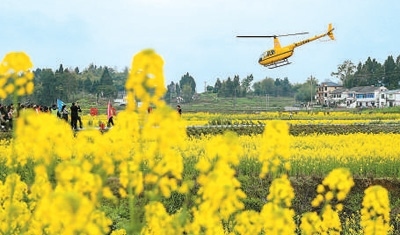 4月以來(lái),四川省崇州市的30萬(wàn)畝油菜花競(jìng)相綻放,從空中俯瞰,將會(huì)帶來(lái)不一樣的感受。為此,當(dāng)?shù)亻_(kāi)通了“低空航線(xiàn)”,游客在半小時(shí)的低空飛行中,不僅可以俯瞰一望無(wú)際的油菜花海,還能欣賞附近錯(cuò)落有致的民居庭院。此外,當(dāng)?shù)剡€推出花海跳傘項(xiàng)目,將極限運(yùn)動(dòng)融入賞花,帶給游客別樣的體驗(yàn)。