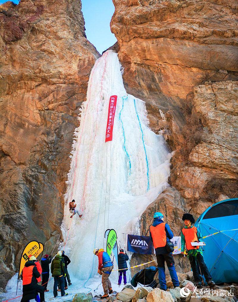 1月16日,由內(nèi)蒙古登山協(xié)會、內(nèi)蒙古攀巖攀冰協(xié)會聯(lián)合舉辦的內(nèi)蒙古第七屆攀冰交流大會在包頭市土默特右旗舉行,來自內(nèi)蒙古各地的攀冰愛好者和戶外運動愛好者在晶瑩剔透的冰瀑上挑戰(zhàn)自我,感受極限運動帶來的樂趣。(丁根厚)