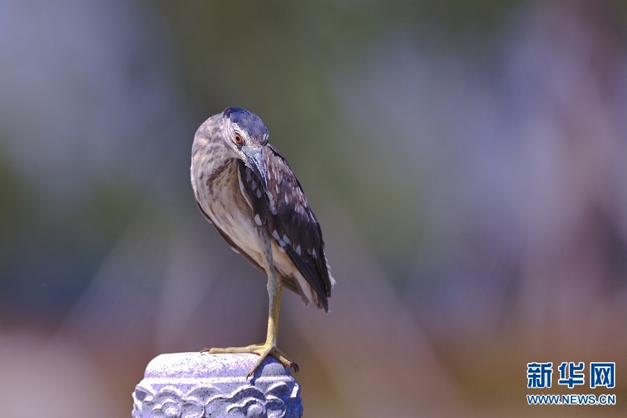 5月15日,河南省商丘市睢陽區(qū)古城南湖岸邊,一只夜鷺單足而立。