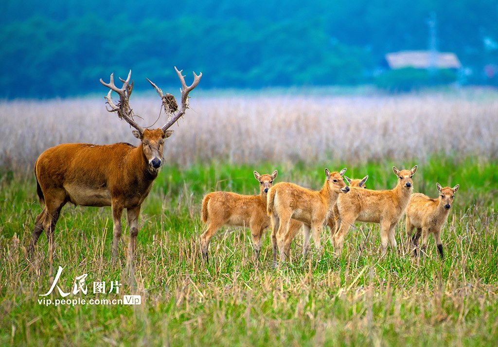 近年來,條子泥濕地生態(tài)環(huán)境越來越好,國家一級保護動物野生麋鹿超過400頭,今年自然產仔達50頭以上,種群數(shù)量得到有效恢復。孫家錄攝(人民圖片網(wǎng))