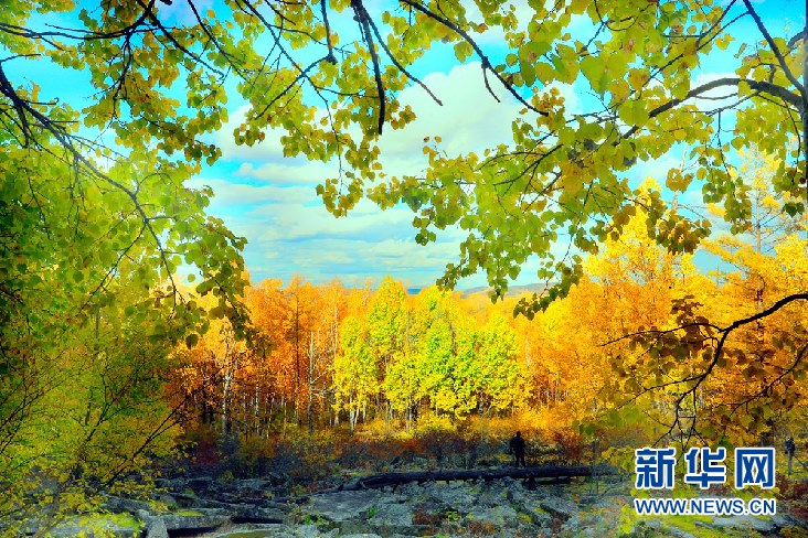 內(nèi)蒙古大興安嶺阿里河國家森林公園內(nèi)的樺林紅葉。(9月28日攝)新華網(wǎng)發(fā)(欒維敬 攝)