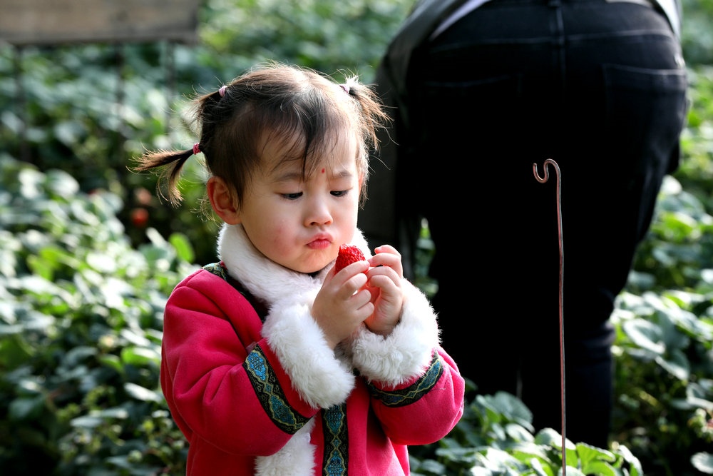 品嘗草莓 記者 張楊攝影
