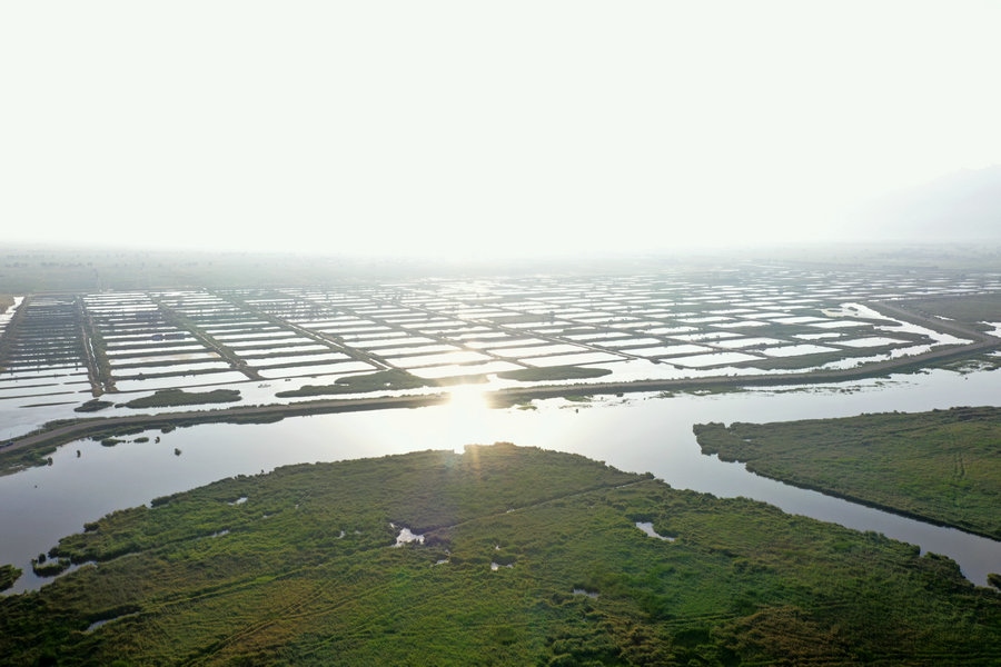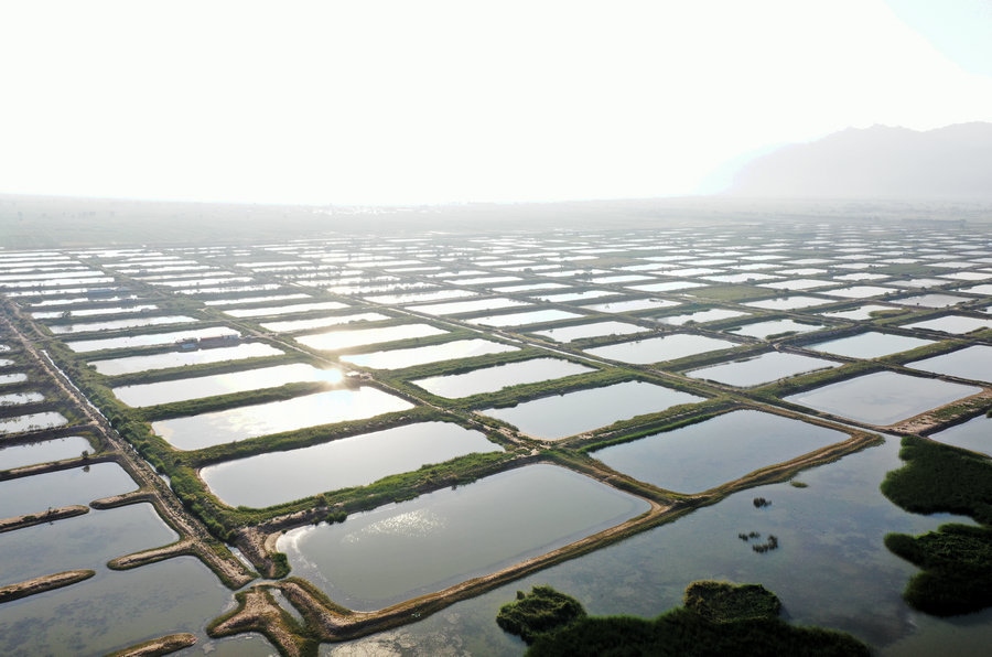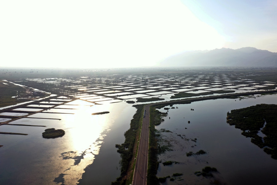 夏日的哈素海濕地,湖水清波蕩漾,水鳥嬉戲成群,山湖相映,一派生機(jī)。