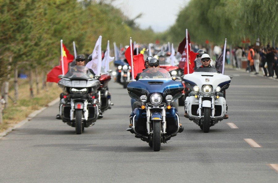 一聲令下,150輛摩托車在轟鳴聲中出發(fā),第一站直奔大黑河軍事文化樂園,在此休整20分鐘后,直奔第二站呼和浩特城市展示中心。