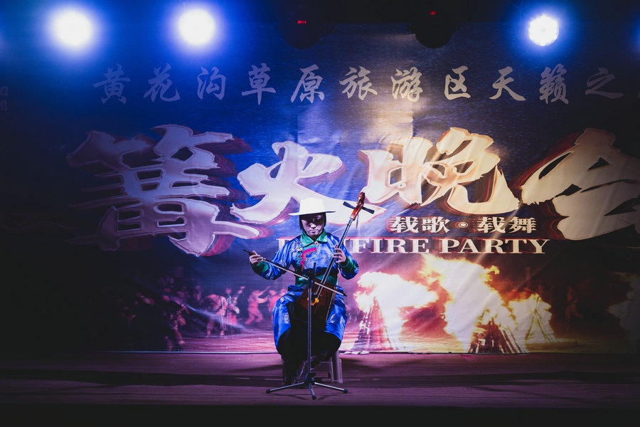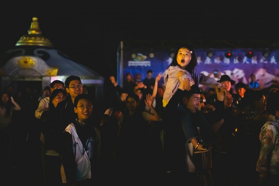 當夜幕降臨,熊熊篝火點亮草原夜色,你也可以加入到狂歡的隊伍中,圍著篝火、拉起手,跳起歡快的安代舞,感受豐富多彩的文化娛樂活動,徜徉夜幕下草原歡樂的海洋。(林則志 攝影)