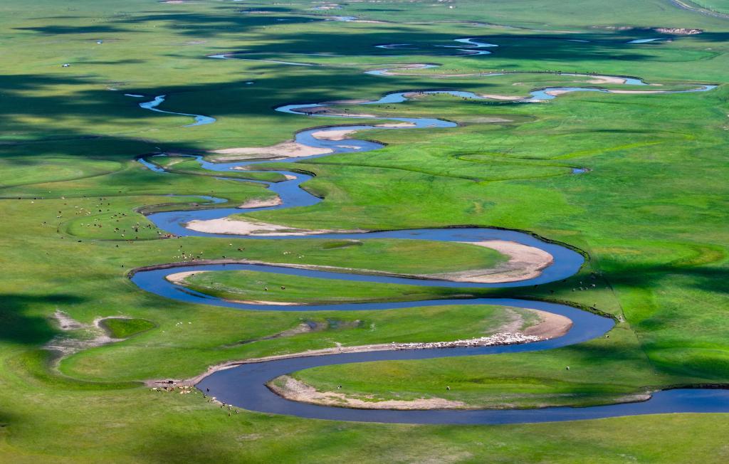 以“曲”聞名天下的莫爾格勒河發(fā)源于內(nèi)蒙古自治區(qū)呼倫貝爾市陳巴爾虎旗境內(nèi),全長319公里。盛夏時(shí)節(jié),迂回輾轉(zhuǎn)的河道、低垂的云影、成群的牛羊共同構(gòu)成一幅宛如油畫般的草原風(fēng)情畫卷。