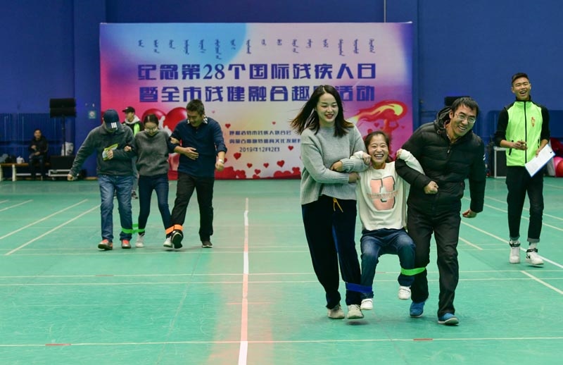 12月 2日,在呼和浩特市全民健身中心綜合體育館,參加殘健融合趣味活動的隊員們正在進行比賽。當日,由呼和浩特市殘疾人聯(lián)合會主辦,以“提高殘疾人的參與度和領(lǐng)導(dǎo)力”為主題,紀念第28個國際殘疾人日暨全市殘健融合趣味活動在該館舉行。活動旨在進一步發(fā)展殘疾人事業(yè),豐富殘疾人文化體育生活,推動殘疾人文化體育事業(yè)健康發(fā)展。(內(nèi)蒙古日報社融媒體記者 懷特烏勒斯攝)
