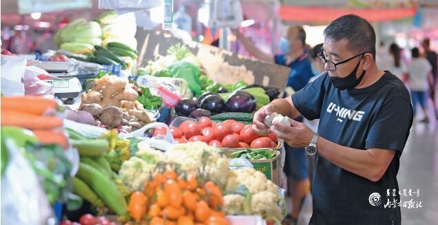 6月17日,呼和浩特市民在選購(gòu)蔬菜。據(jù)全區(qū)各盟市上報(bào)自治區(qū)發(fā)改委價(jià)格監(jiān)測(cè)中心的監(jiān)測(cè)數(shù)據(jù)顯示:我區(qū)羊肉、雞肉、雞蛋、蔬菜類價(jià)格下降,牛肉價(jià)格上漲,豬肉、食用油、水產(chǎn)品價(jià)格略有升降,成品糧價(jià)格穩(wěn)中有降,豆腐、牛奶價(jià)格持平。雞蛋價(jià)格自5月上旬開始持續(xù)回落,地產(chǎn)蔬菜逐漸上市,全區(qū)蔬菜價(jià)格呈季節(jié)性下降趨勢(shì)。(內(nèi)蒙古日?qǐng)?bào)社融媒體記者孟和朝魯攝)