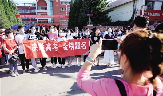 老師為考生準(zhǔn)備了“決戰(zhàn)高考,金榜題名”條幅鼓勁。祝家樂攝