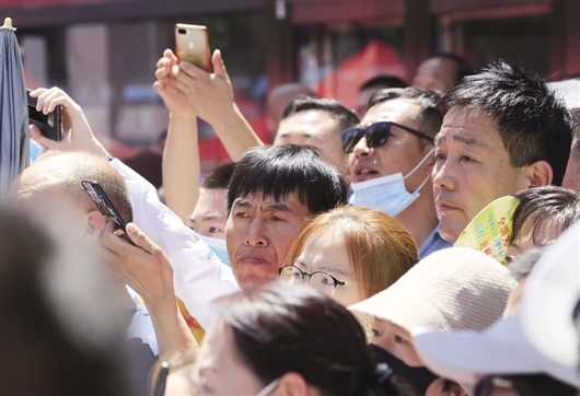 記者現(xiàn)場看到,家長們打著陽傘、戴著口罩,陪著考生等候在校門口,有些學(xué)生的爺爺奶奶也來助陣。“別緊張,正常發(fā)揮就行,我們在外面等你?!奔议L們疏導(dǎo)著孩子的情緒,給考生們加油。