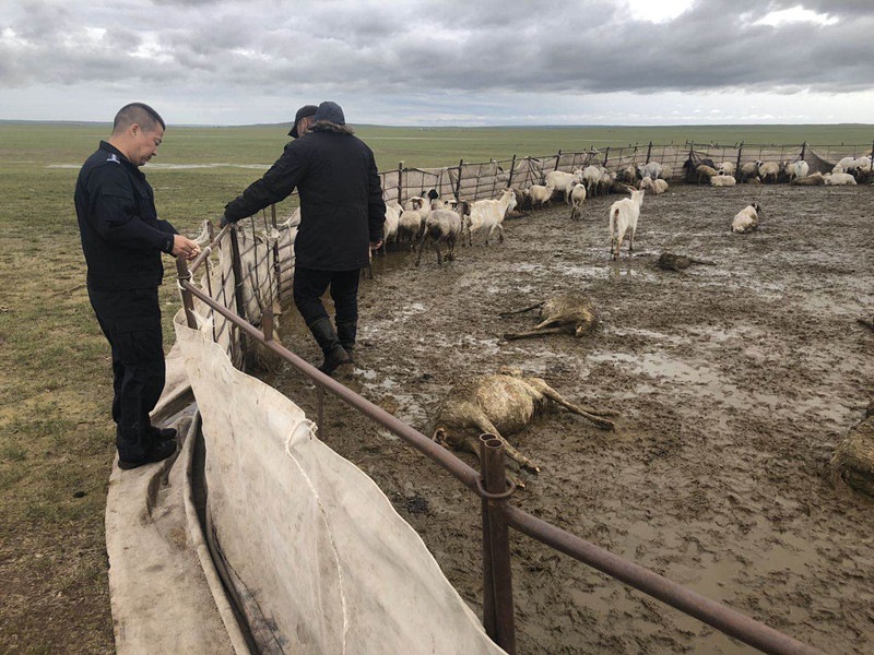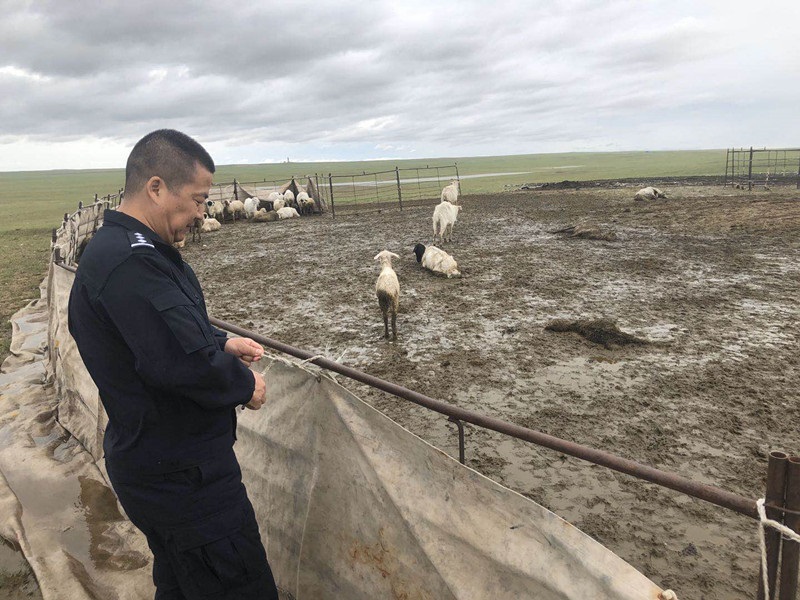 由于轄區(qū)連續(xù)降雨導致牧民放牧生活遇到困難,部分地區(qū)出現(xiàn)了下洪導致羊群不同程度受災。當日,派出所接到轄區(qū)牧民新某求助電話,因連續(xù)降雨導致羊群部分傷亡,損失較大。派出所立即組織民警前往新某放牧點開展救助,經過4個多小時的努力,終于成功搭建新的避雨羊圈,并將70余只成羊、30余只羊羔轉移到安全地段,及時為牧民挽回了經濟損失近10萬元。(特日格勒)