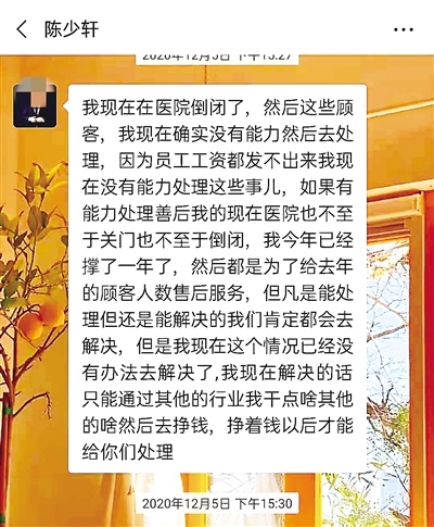 陳少軒在顧客追問下回復:醫(yī)院倒閉