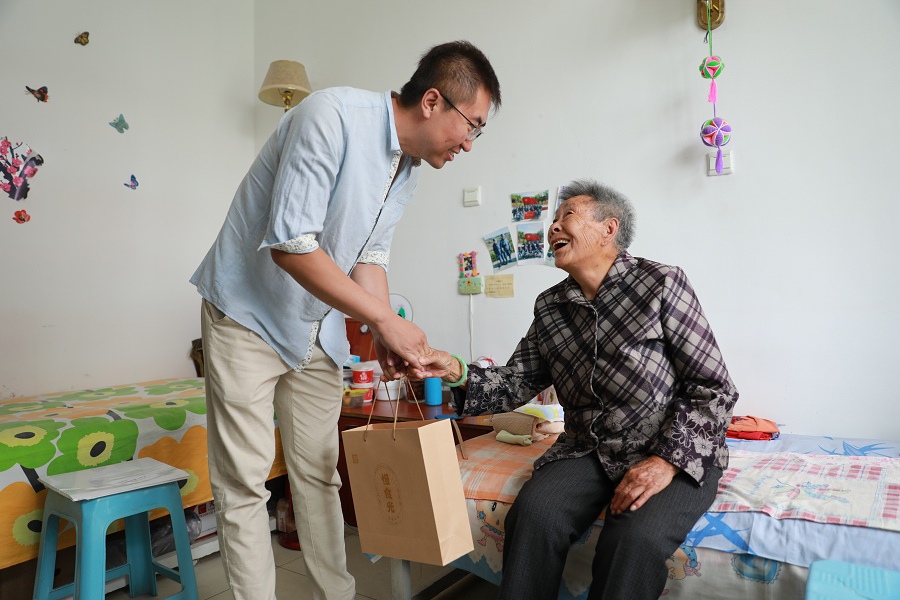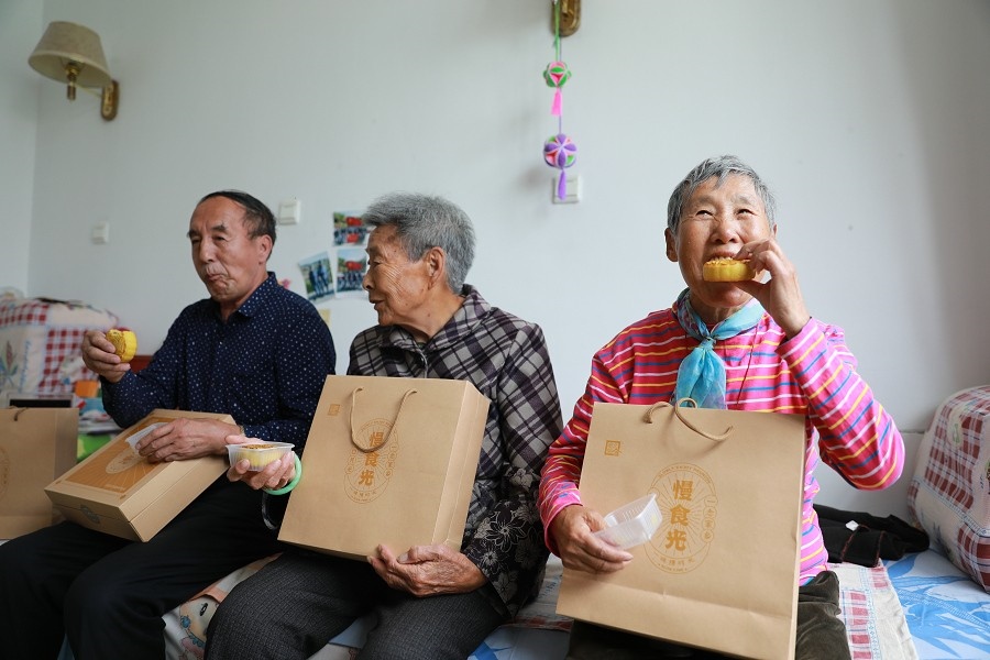 崔玉蘭老人熱情地邀請(qǐng)大家走進(jìn)她的臥室。安德?tīng)柎蜷_(kāi)一盒月餅遞給了崔玉蘭老人?!昂贸?,好吃!”老人嘗了嘗月餅說(shuō)道。