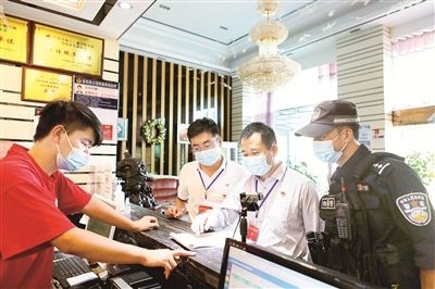 圖為近日,云南省宜良縣紀(jì)委監(jiān)委聯(lián)合相關(guān)部門到轄區(qū)內(nèi)酒店了解情況。易盛芳攝