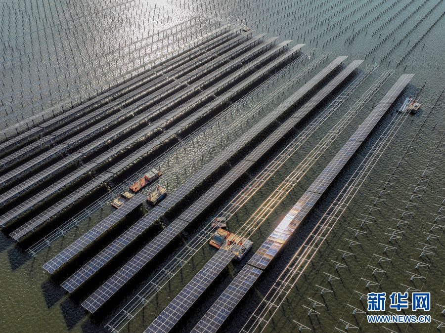 近年來,肥東縣大力發(fā)展新能源產業(yè),積極推廣“漁光互補”光伏電站建設,助力地方經濟發(fā)展并帶動群眾就業(yè)。截至目前,該縣已建成和在建的“漁光互補”光伏電站總裝機容量達480兆瓦。新華網發(fā)(阮雪楓攝)